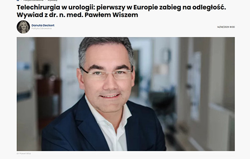 1 sierpnia 2025 roku miałem zaszczyt poprowadzić pierwszą w Polsce operację zdalną – prostatektomię wykonaną z użyciem systemu robotycznego, łącząc dwa miasta: Gdańsk i Warszawę. 2 września 2025 roku przeprowadziłem natomiast pierwszą w Europie zdalną operację pomiędzy Polską a Belgią. To symboliczne momenty dla rozwoju medycyny w naszym regionie i potwierdzenie, że polscy lekarze są gotowi na najbardziej zaawansowane rozwiązania w światowej chirurgii.