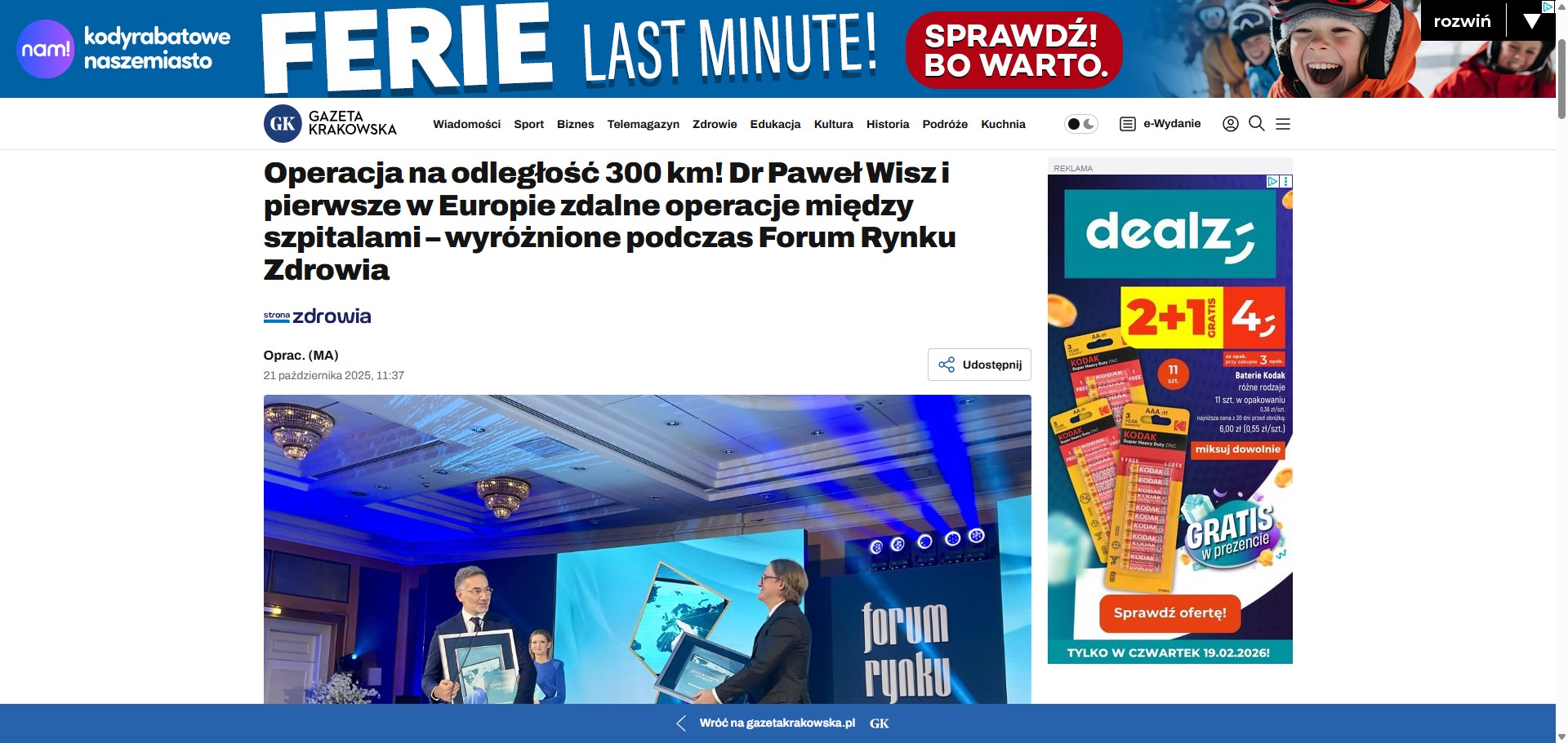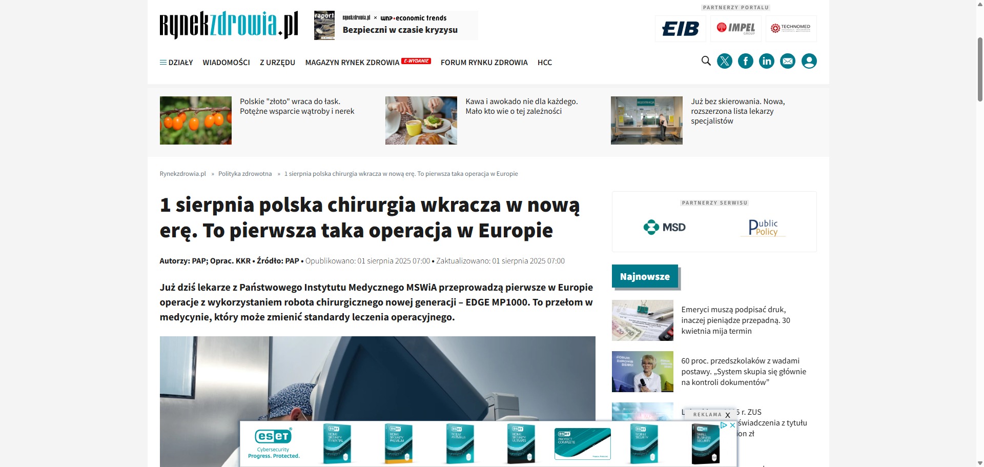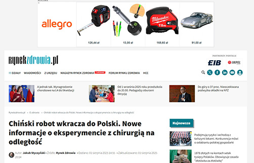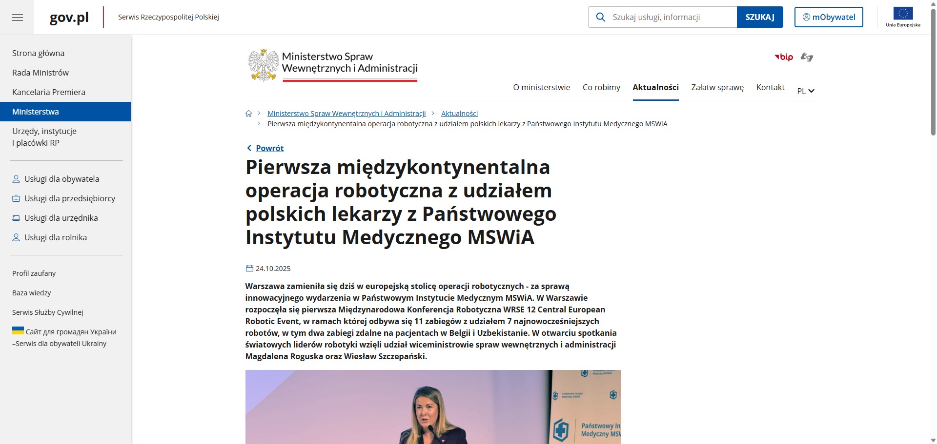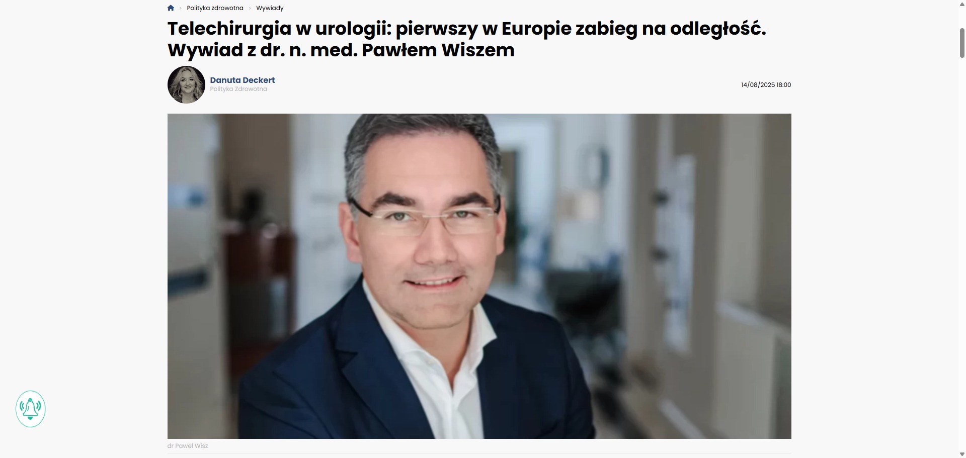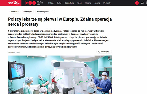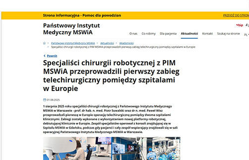 1 sierpnia 2025 roku wspólnie z prof. n. med. Piotrem Suwalskim oraz zespołami Państwowego Instytutu Medycznego MSWiA, zrealizowałem pierwszą w Europie zdalną operację robotyczną